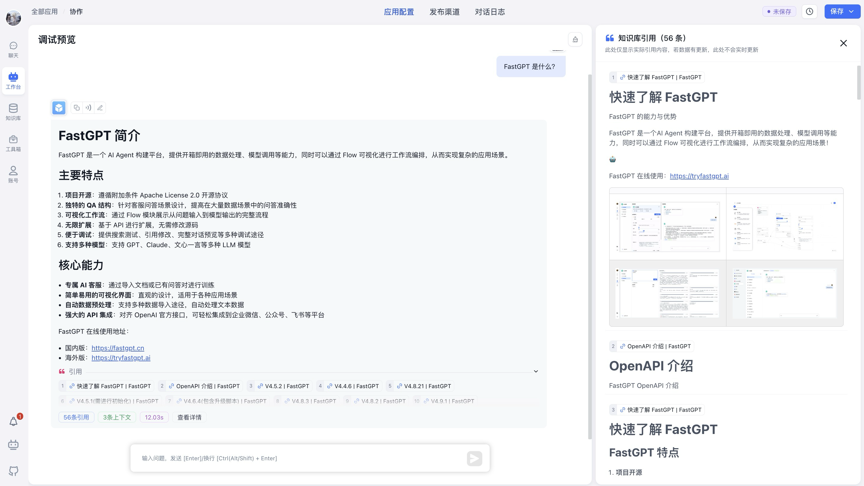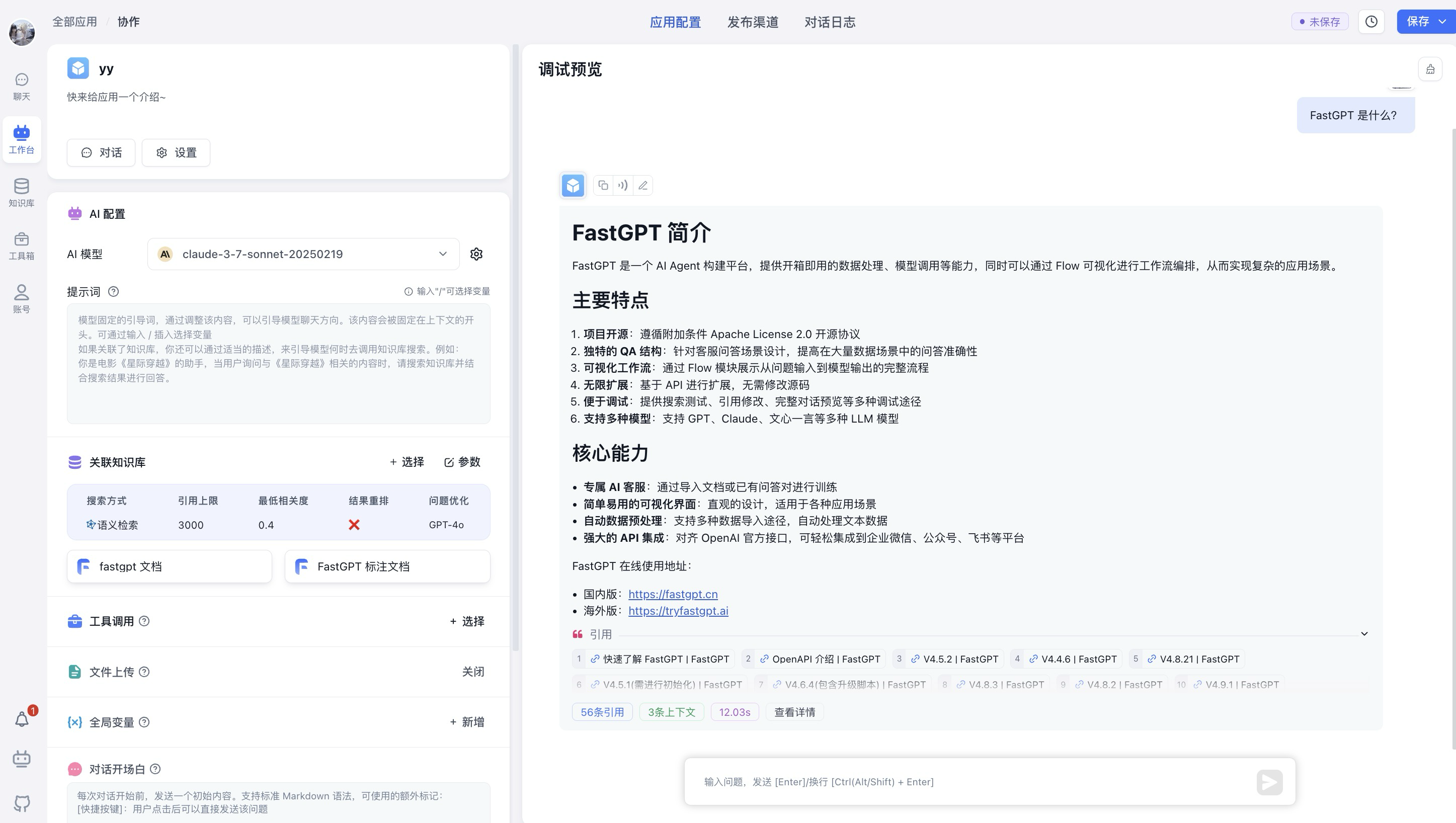 FastGPT 提供完整的数据智能化解决方案,从数据导入、预处理到知识匹配,再到智能问答,全流程自动化。配合可视化的工作流设计,轻松打造专业级 AI 应用。
